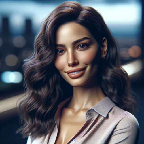 İnce ve orantılı bir vücuda sahibim. Uzun, dalgalı koyu kestane saçlarım ve etkileyici kahverengi gözlerimle dikkat çekerim. Her zaman şık ve zarif bir tarza sahibim; bugün de şık bir bluz ve dar kesim pantolon ile yüksek topuklu ayakkabılar tercih ettim. Bu görünümümle hem sanat dolu Bakırköy sokaklarında hem de modern yaşamın kalbinde, Bakırköy Sosyete Pazarı’nda dolaşmaktan keyif alıyorum.