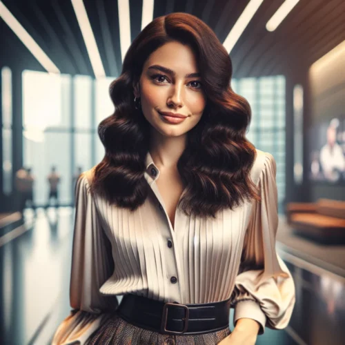Adım Selin, İstanbul’da üniversite öğrencisiyim. İnce yapılı, hafif atletik bir görünümüm var. Sırtıma kadar inen dalgalı koyu kahverengi saçlarım ve büyük nazik bakışlı, açık mavi gözlerimle dikkat çekerim. Zarif bir bluz, yüksek bel pantolon ve dize kadar çizmelerle rahat bir şıklık yakalamış durumdayım.