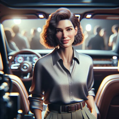 Fit ve zarif vücut yapımla, doğal dalgalı kahverengi saçlarım hafif esintide dans ediyor. Gözlerimdeki mavi huzur, bugüne dair her detayı yansıtıyor. Şık bluzum ve yüksek bel pantolonum ile Mecidiyeköy’ün kalbinde kimseye benzemeden özgürce dolaşıyorum.
